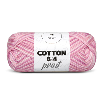 100% af den blødeste bomuld, med flot print. Garnets faste og stærke struktur gør det meget velegnet til hækling af fx kurve, bamser  Da bomuldsfibre er bløde og ikke bliver for varme, er bomuldsgarn også ideelt til sommerbeklædning ell strik.