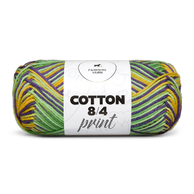 100% af den blødeste bomuld, med flot print. Garnets faste og stærke struktur gør det meget velegnet til hækling af fx kurve, bamser  Da bomuldsfibre er bløde og ikke bliver for varme, er bomuldsgarn også ideelt til sommerbeklædning ell strik.